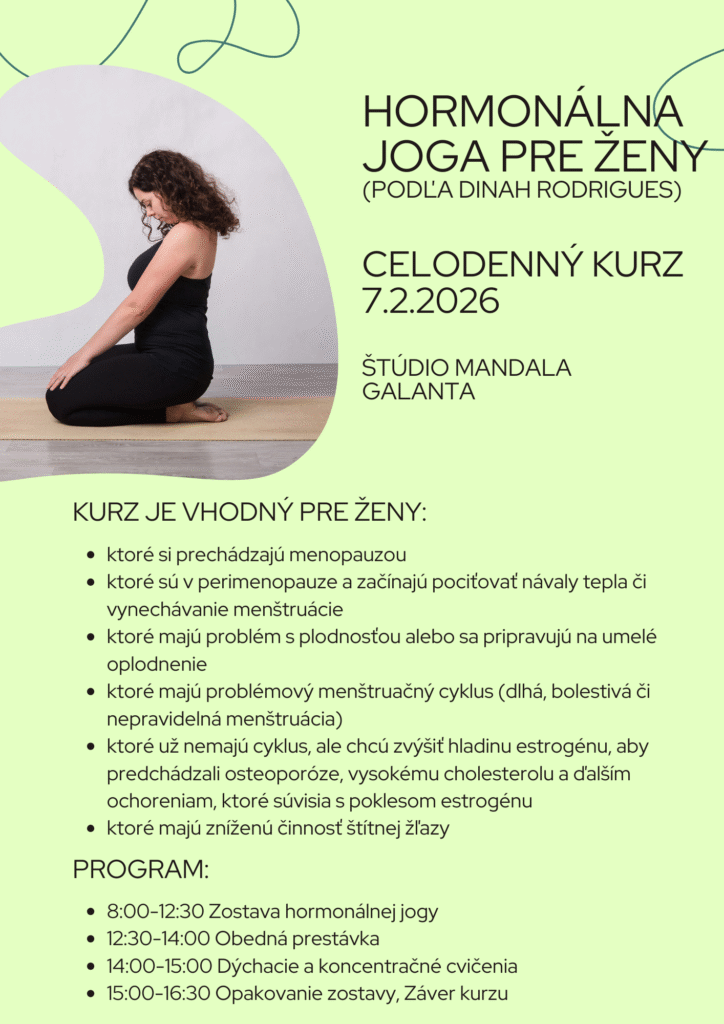 Po kurze bude možnosť navštevovať hodiny hormonálnej jogy pre absolventky tohto kurzu.